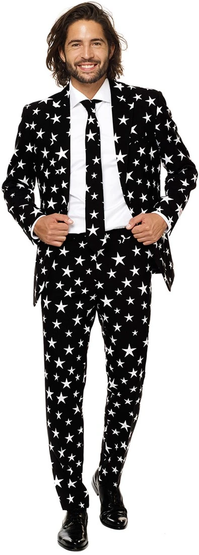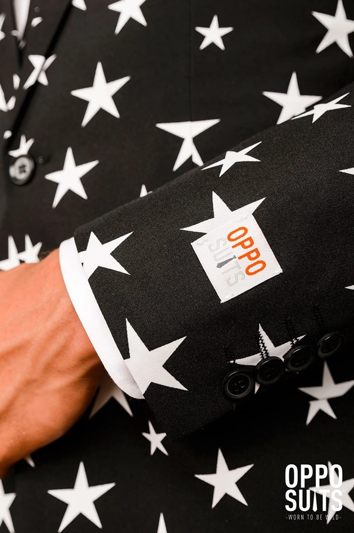 Weleens iemand ontmoet waarvan je volledig van de planeet van raakte? Dat is de essentie van Starstruck zijn. OppoSuits komt nu met een kostuum waar je dat gevoel bij iedereen achter kunt laten. Met de OppoSuit Starstruck ben jij gegarandeerd de ster van de dansvloer, de feesttent of de polonaise. Bel NASA maar alvast, want we hebben een nieuwe ster gevonden: Jij!