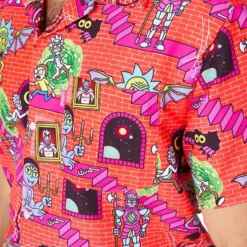 Patroon: muur, trappen, rick, morty en andere teken figuren