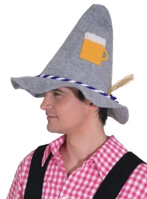 Grote Bayern hoed, met een blauw/wit koord en een bierglas op de hoed.