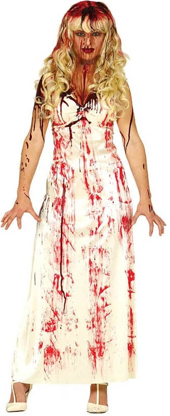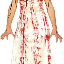 Ga terug naar het schoolfeest in 1976, en verkleed je als Carrie uit de gelijknamige film(s) in deze op Carrie gebaseerde jurk! Deze jurk is overgoten met bloed en ideaal om met Halloween aan te doen.