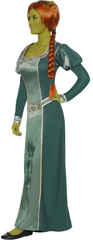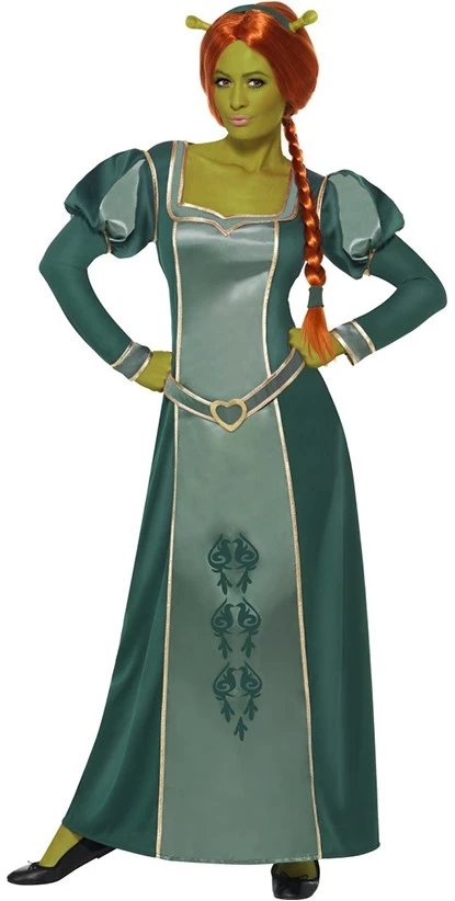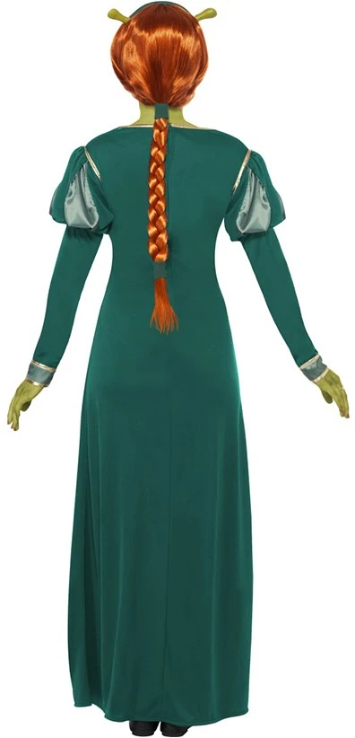 De prachtige jurk van Fiona uit de Shrek-films. Het kostuum is inclusief de bijpassende pruik en hoofdband met oortjes.