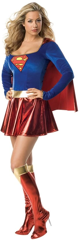 Supergirl de Luxe, dit supergirl pakje bestaat uit het het pakje, de cape en de overlaarzen. Tevens verkrijgbaar in een kinder versie.