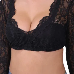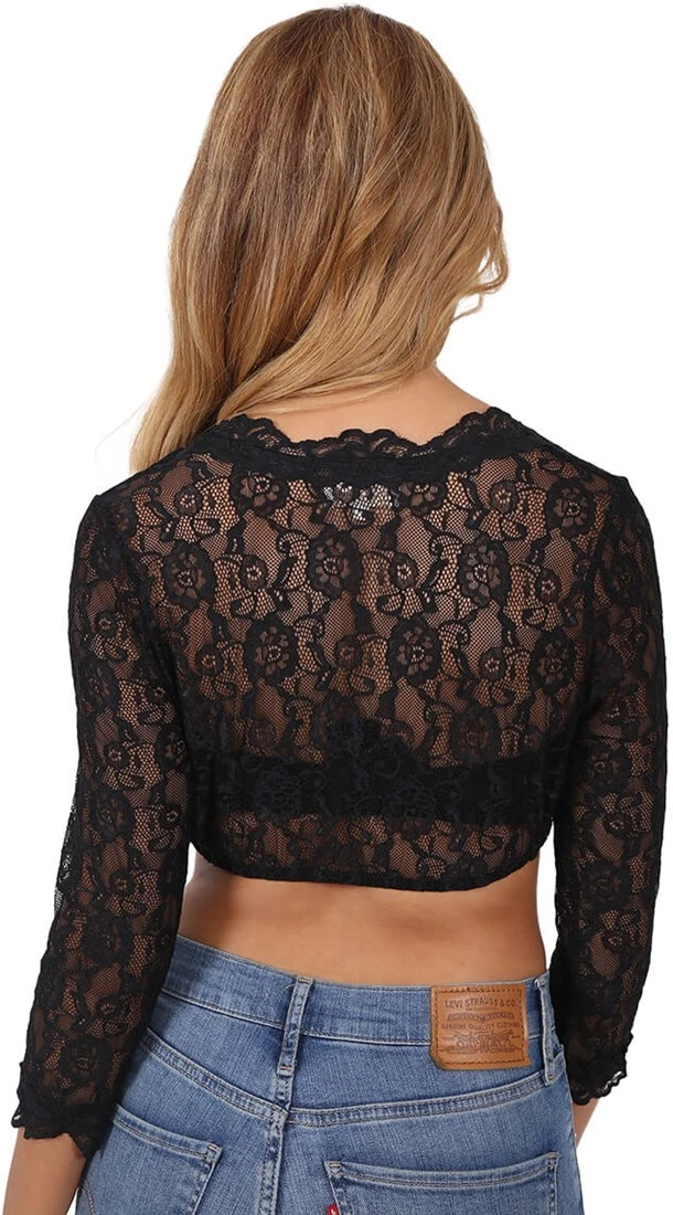 Details: transparant kant met versieringen op de V halslijn om het decolleté benadrukken en een 3/4 mouw