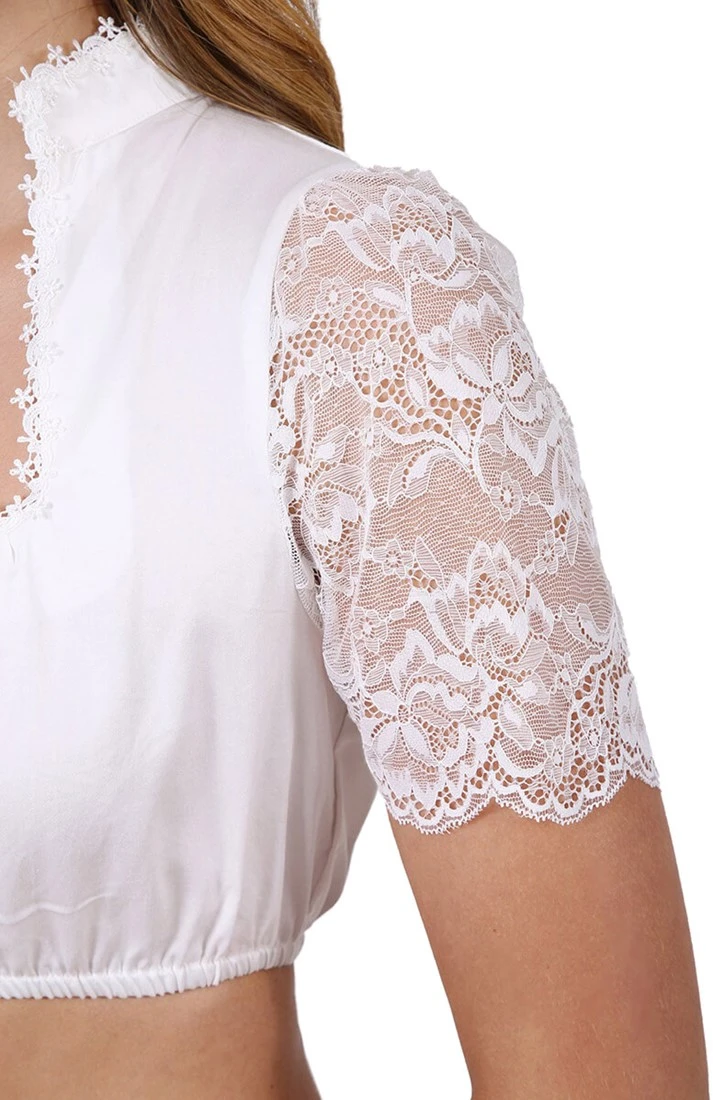 Details: opstaande kraag, fijne bloemenrand bij de hals en hoogwaardige kanten mouwen