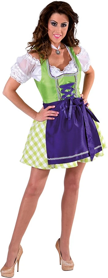 Een mooie dirndl met frisse kleuren, gemaakt van een fijn geweven stof. Het schort is gemaakt van taffeta, soortgelijk aan satijn. Deze dirndl wordt exclusief dirndlblouse geleverd (wel apart verkrijgbaar).