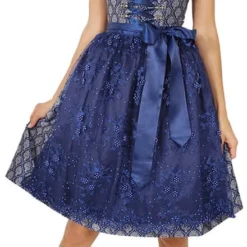 Details dirndl: hart vormige hals die is versierd met een ruches en sierlijke haakjes met strass