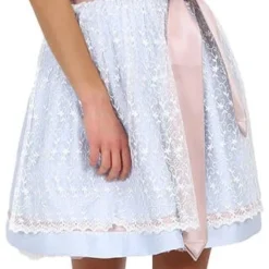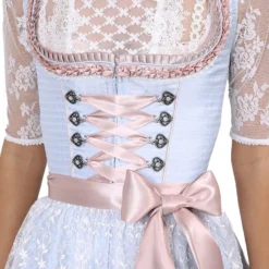 Details dirndl: versierd met pailletten, bloemenapplicaties, siersteentjes en grote randen langs de decolleté.