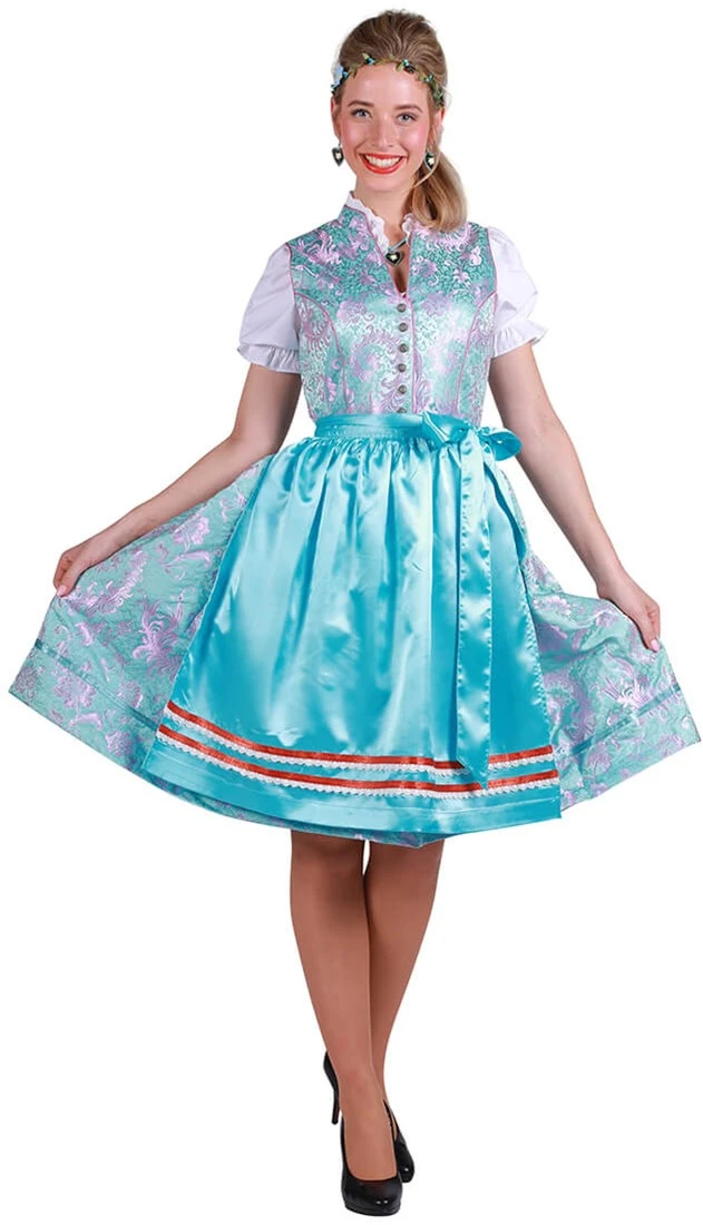 Ga gekleed naar een Oktoberfest in deze mooie dirndl met een zachtroze motief.