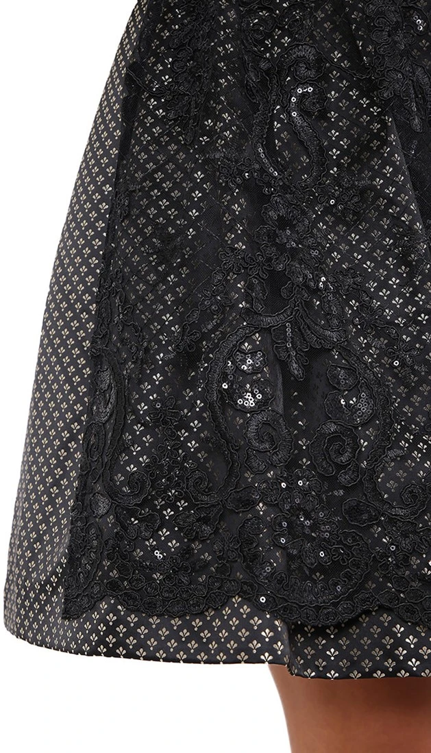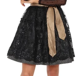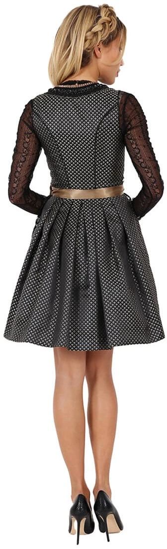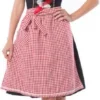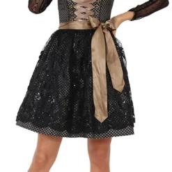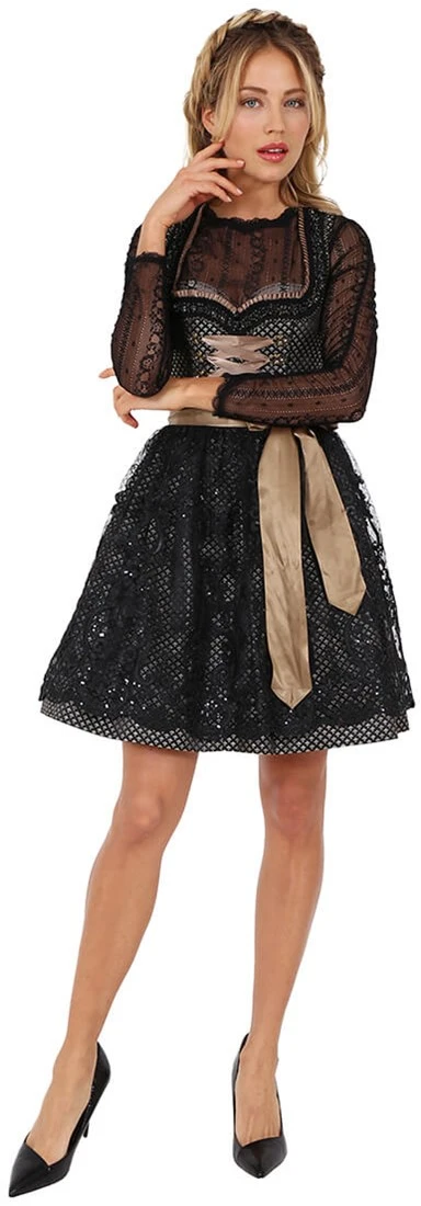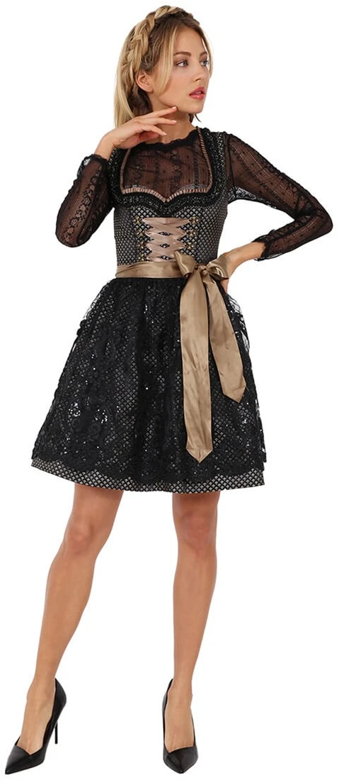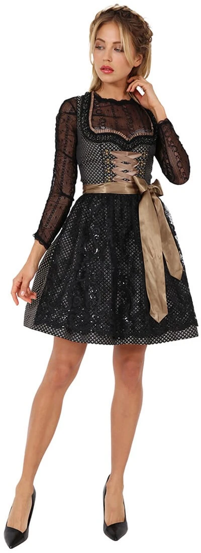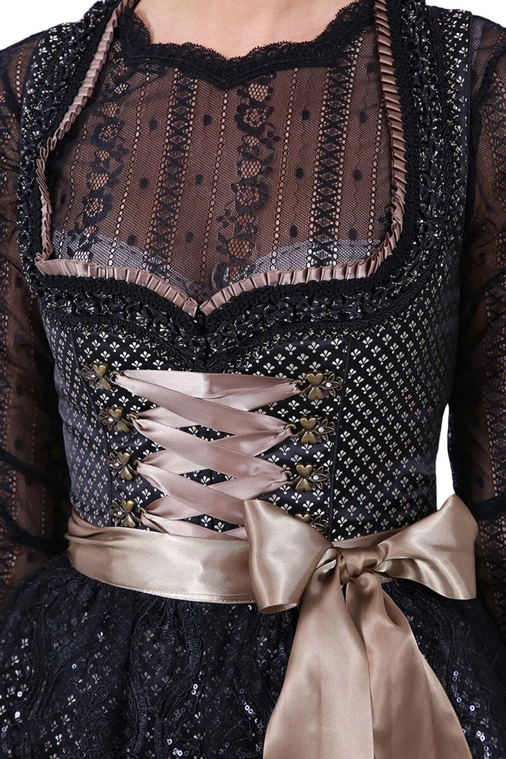 Details dirndl: uitgebreide randen langs een hartvormige hals en lijfhaakjes met strass