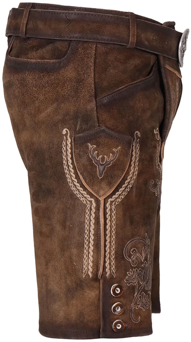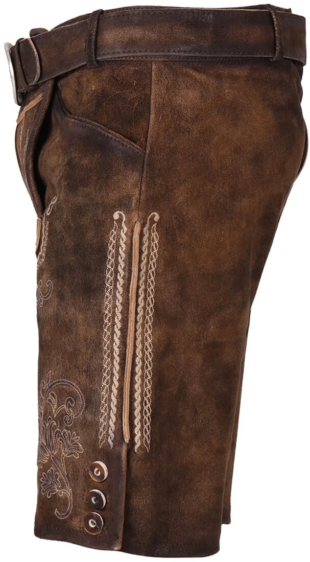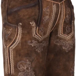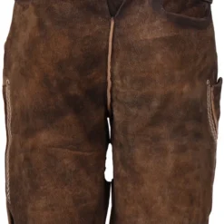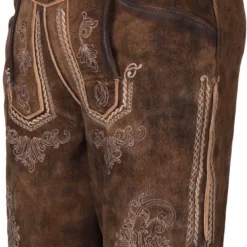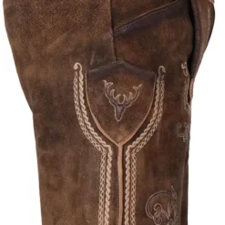 Details: traditionele lederbroek van geitenvelours