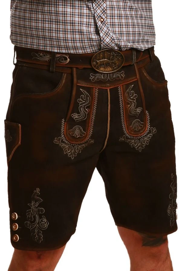 Een erg mooie lederhose met een antiek bruine kleur met roesttinten. Een kwaliteits Tiroler broek met een fijne pasvorm.