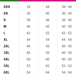 | Maat | 46 = XXS, 48 = XS, 50 = S, 52 = M, 54 = L, 56 = XL, 58 = XXL, 60 = 3XL, 62 = 4XL, 64 = 5XL |
