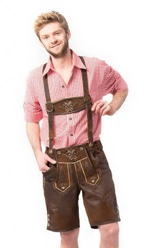 Deze fraaie smokey bruine lederhose is gemaakt voor elk oktoberfest.
