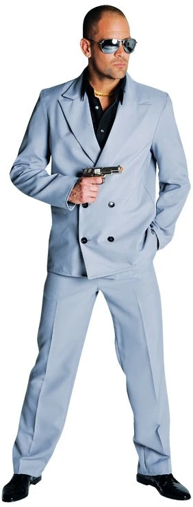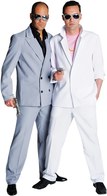 Herenkostuum Miami Vice Grijs. Dit kostuum bestaat uit een Broek en een Colbert. Soortgelijk kostuum ook verkrijgbaar in wit.