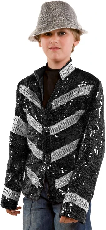 Pailletten zwart/wit jasje met schuine strepen voor een Michael Jackson look.