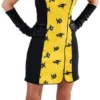 Details: op de kraag en midden van de jurk zitten turquoise kleurige pailletten