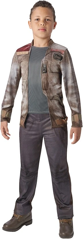 Ga in dit leuke kostuum verkleed als Finn, bekend uit de Star Wars Episode VII. Het kostuum is een overall met een gehele print van een broek, de jas en het shirt eronder.