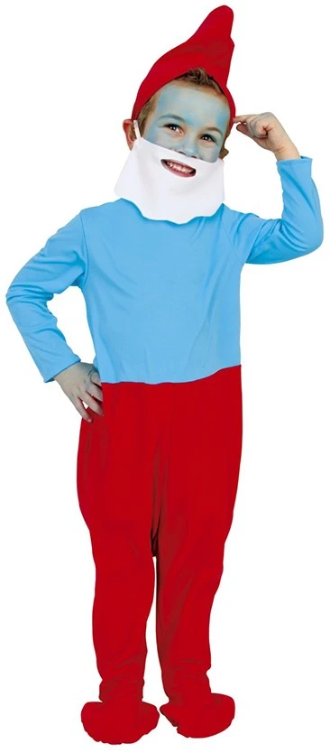 Mooi Smurfenkostuum, inclusief bijpassend rood mutsje en de baard.