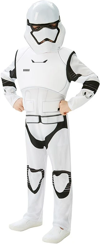 In dit leuke kostuum kun je verkleed als een stormtrooper, bekend van Star Wars (Episode VII). Het kostuum bestaat uit de overall met verstevigd borstgedeelte en het halfmasker. Dit is de luxe variant met gewatteerde borstkas.