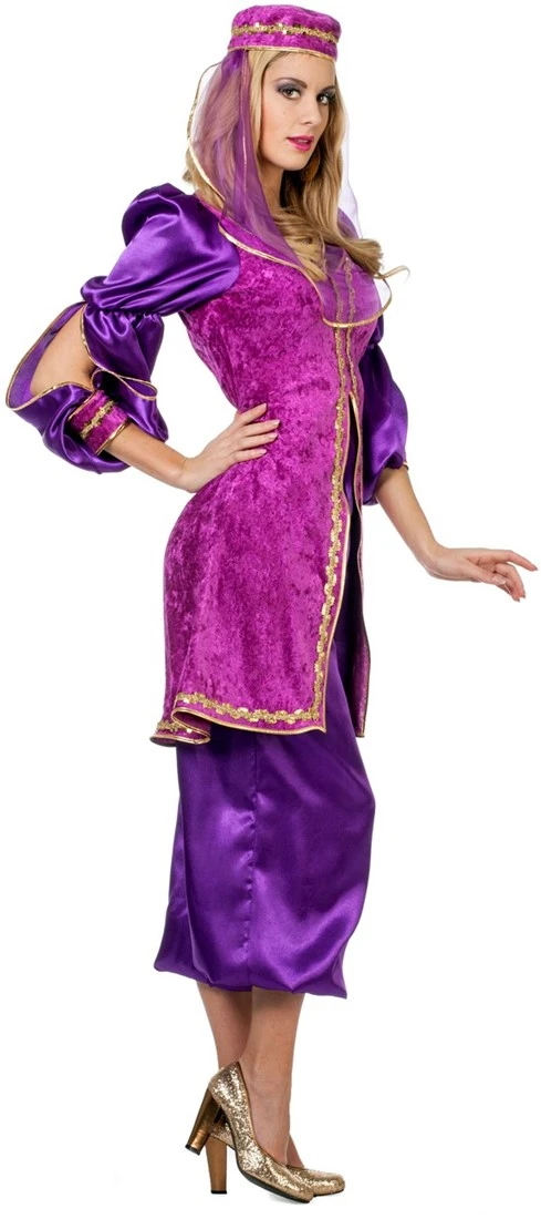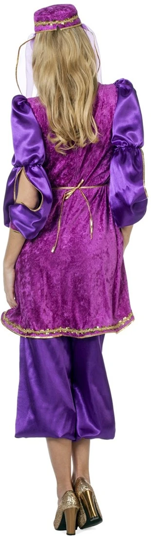 Details: op het bovenstuk en haremhoed zitten goudkleurige holografisch pailletten