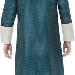 Details: voorop de jurk verticaal 6 knopen met aan de onderkant een print van doodshoofden, witte kraag en mouwen