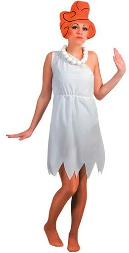 Kostuum Wilma Flintstone, bestaande uit een jurk en een pruik (foam). Verkrijgbaar in een maat, geschikt voor bijna iedereen. Bijpassend kostuum voor Fred ook verkrijgbaar.