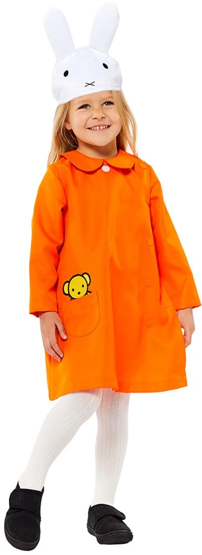 Wie vindt dit pakje nou niet ontzettend leuk? Met dit super leuke oranje jurkje en muts, tover je jezelf om in de enige echte Nijntje!