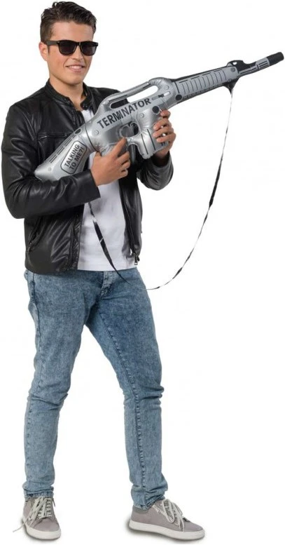Een stoer opblaasbaar machine geweer van circa 94 centimeter lang.