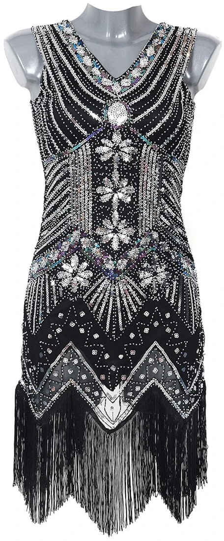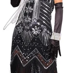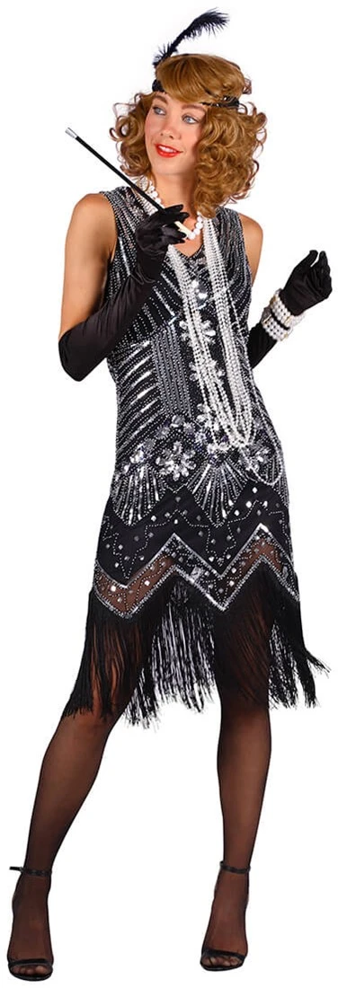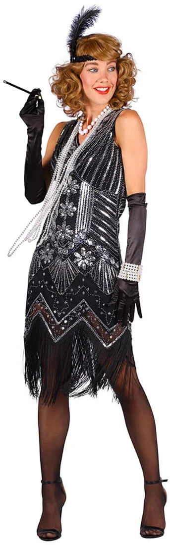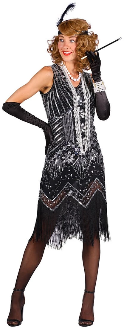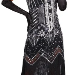Ga met deze zwart-zilveren jaren 20 jurk verkleed als het personage Catherine uit Peaky Blinders, een bekende Britse historische dramaserie .