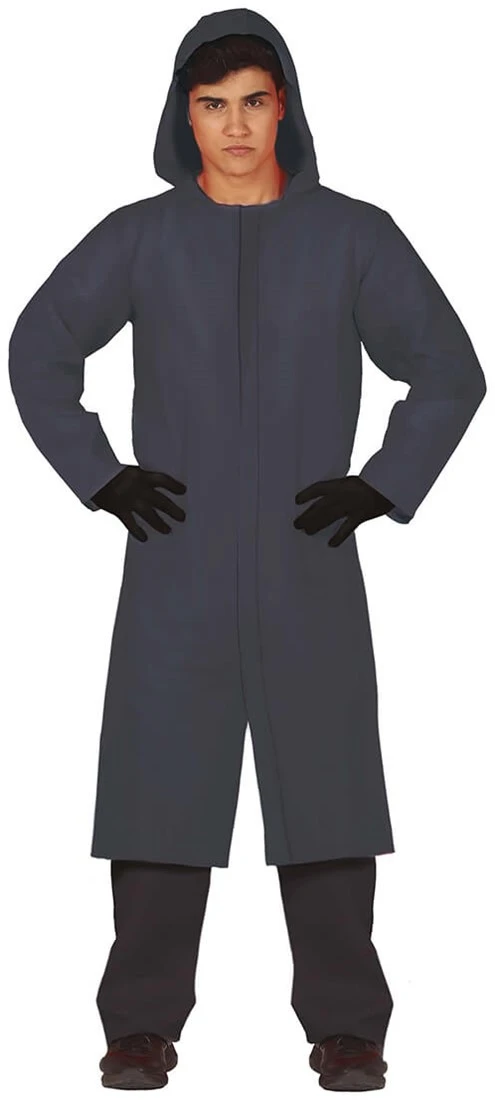 Details: de capuchon zit aan het kostuum vast