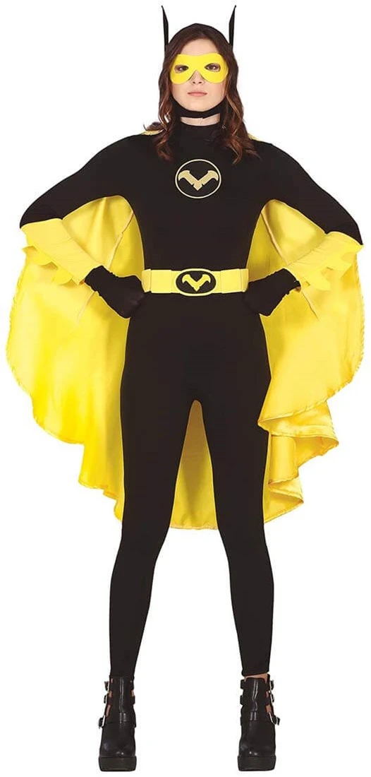 Details cape: glimmend satijn en via klittenband aan de jumpsuit vast te maken
