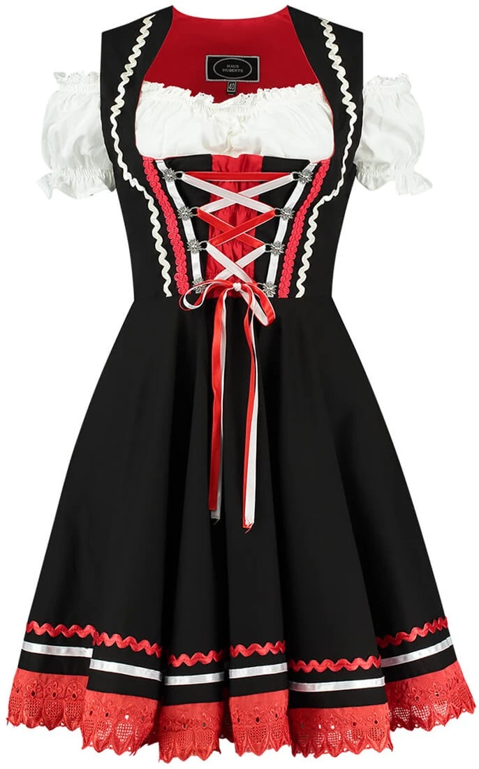 Deze vrolijke dirndl met zeer populair design is uitstekend geschikt voor elk oktoberfest.