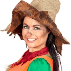 Details hoed: jutte stof aan de buitenkant en de binnenkant is gevlekt